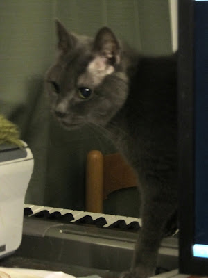 It has gone and gotten very late so I'm going to stick mostly to gratitude tonight. Today would have been my sister's 74th birthday. I still miss her. It's also my friend Vivian's birthday, so I wish her a happy day and many merry unbirthdays to go with it. Tara posed for me this evening. She has been very social and head-butty, so I thought I'd give the Viralys gel a try. Won't even sniff it, the little stinker. Such is life.